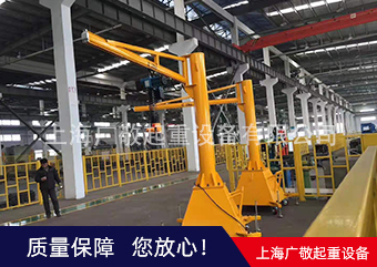 移动式悬臂吊更具灵活机动、适应性广等特点,是高效自动生产线上必备的单独应急吊装设备,有了它能确保生产线畅通无阻。